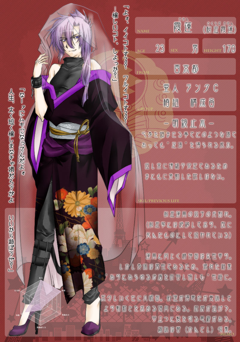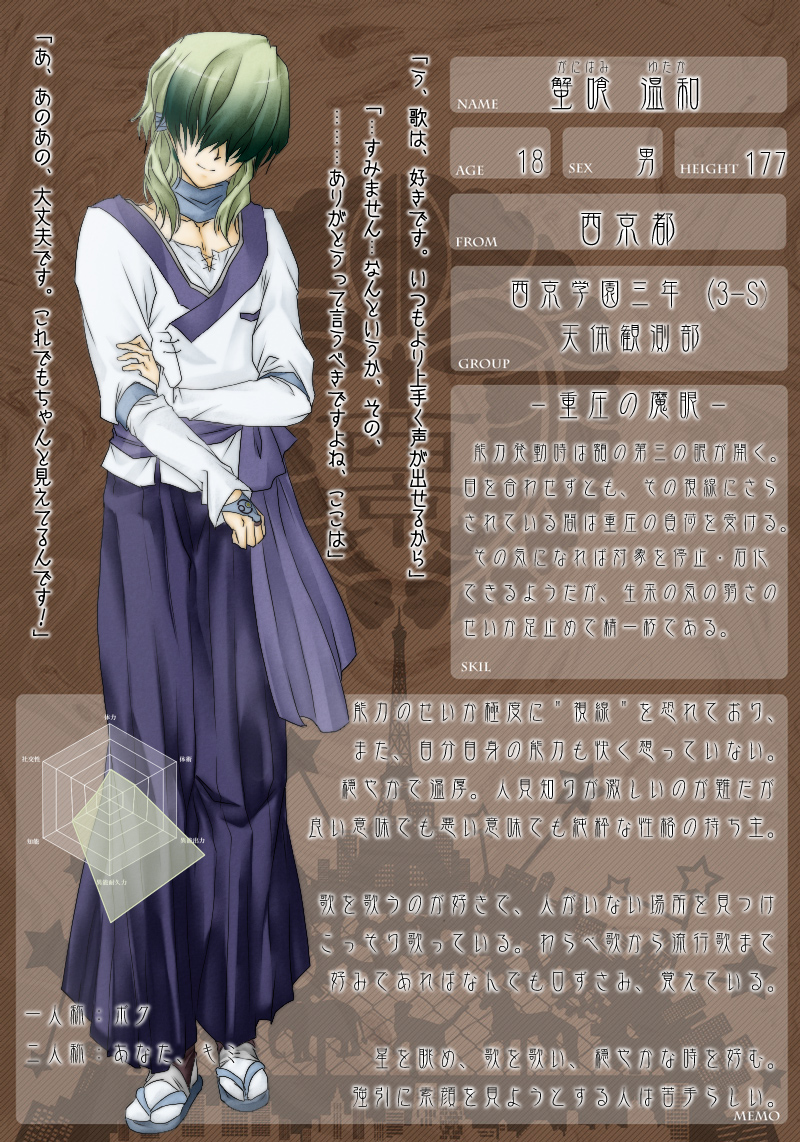 ■etc: 能力のせいか極度に"視線"を恐れており、また、自身の能力も快く思っていない。