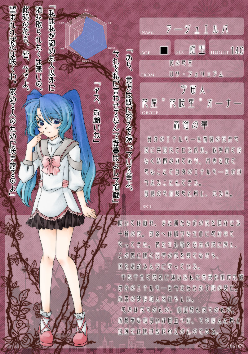 ■etc: 咲いては枯れ、また新たな命の花を咲かせる一輪の花。西京へは様々な生命に惹かれてやってきた。